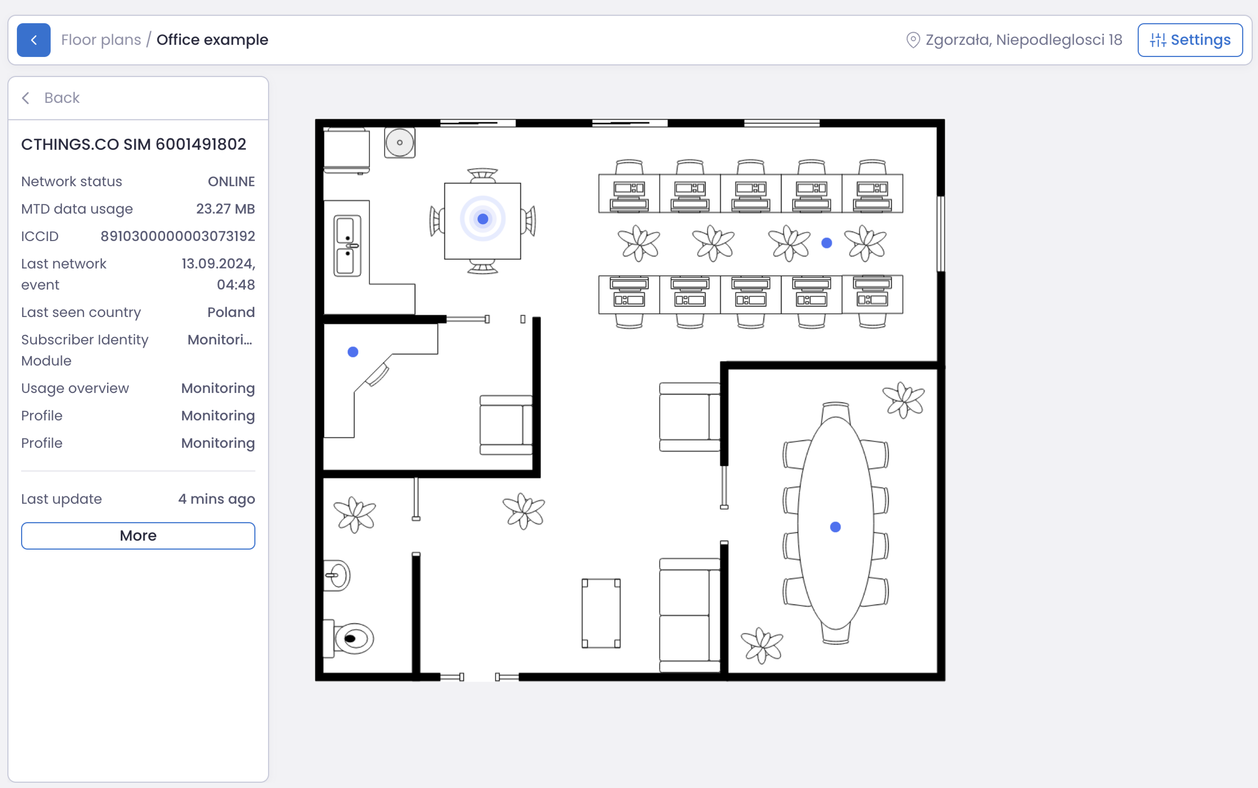 After creating the floor plan, you can view details for each sensor by: